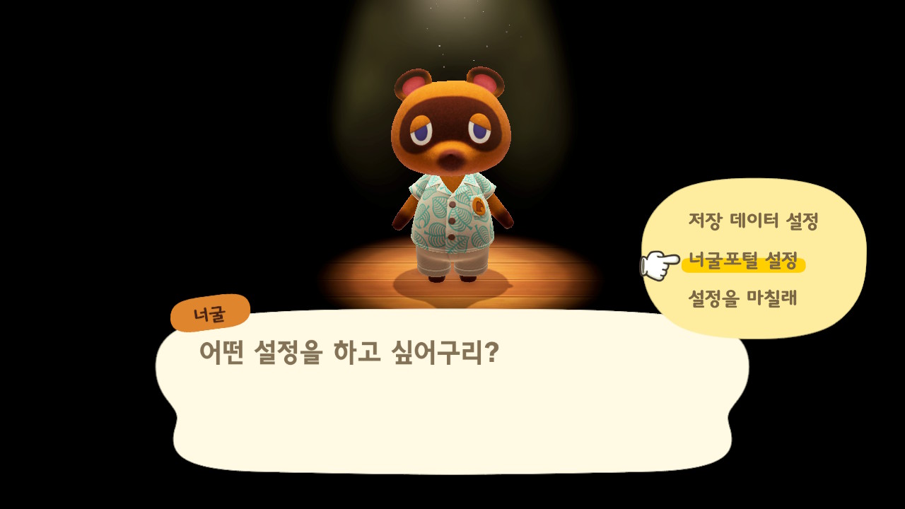 너굴이가 나와 어떤 설정을 할 지 물어보는데요 저희는 "너굴포털 설정"을 선택해줍니다.