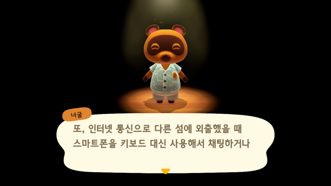 이 부분에 대해서 아쉬워하고 있었는데 스마트폰 앱을 통하여 스마트폰으로 채팅을 치면 동물의 숲 채팅창으로 내용이 보내지는 방법을 알게 되어 좋은 꿀팁인 거 같아 공유해드리려고 합니다!