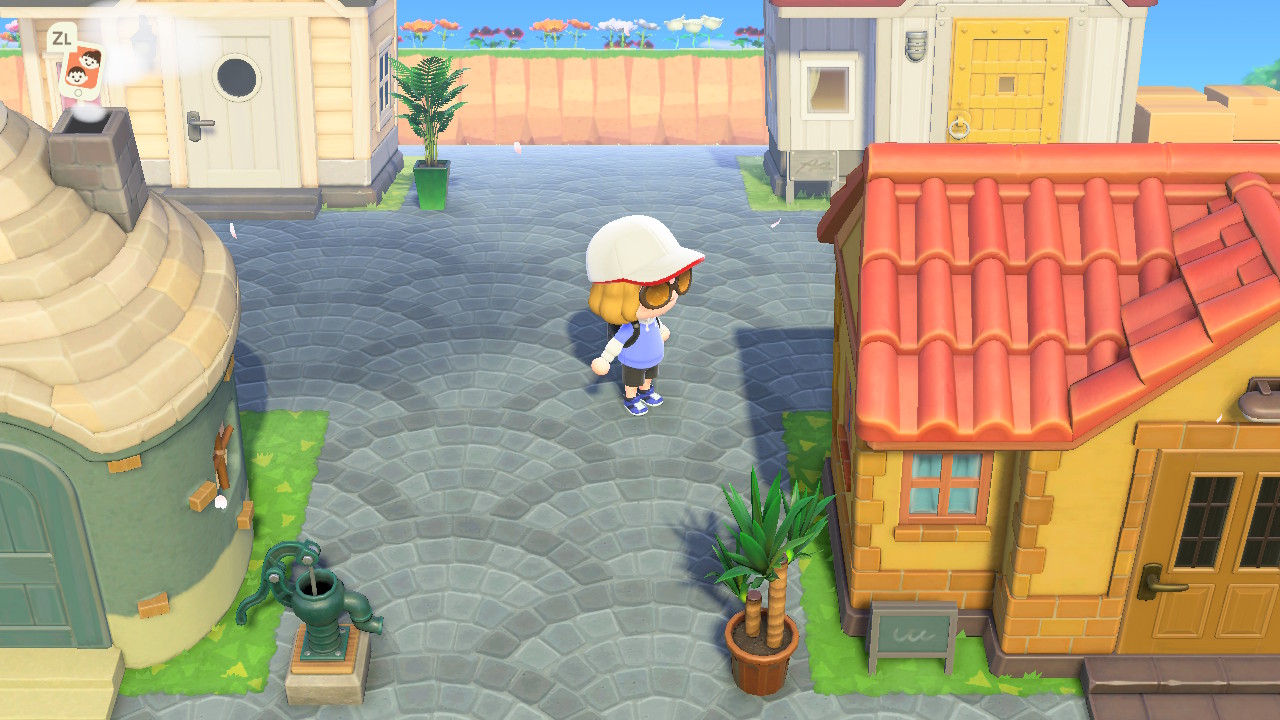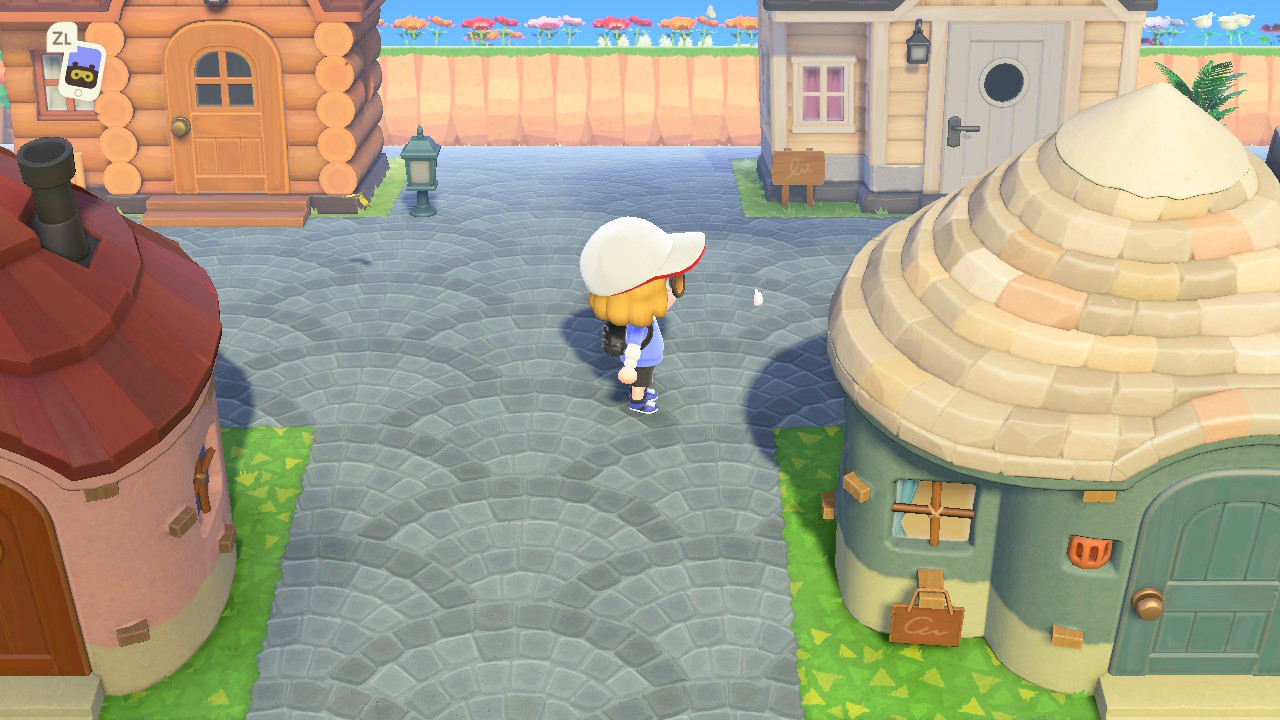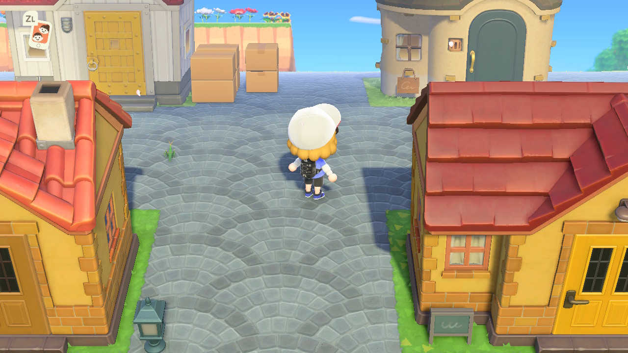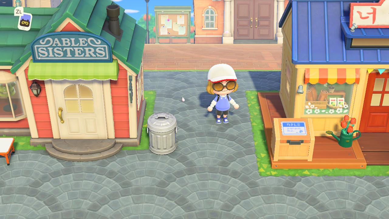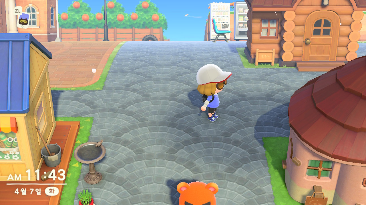 왼쪽에는 박물관, 안내소, 옷가게, 너굴상점이 있고