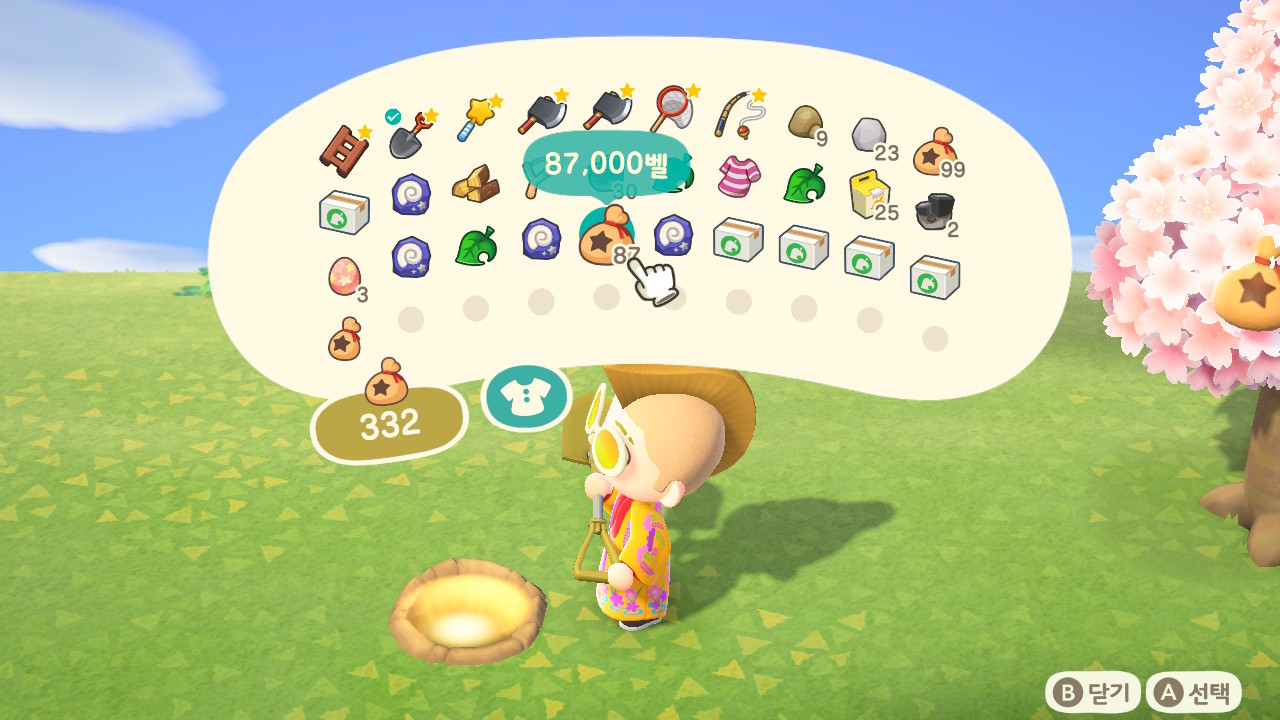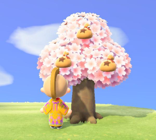 돈나무는 하루에 한 번 섬 랜덤에서 빛이 나는 구멍을 파서 1,000 벨을 얻으시고
