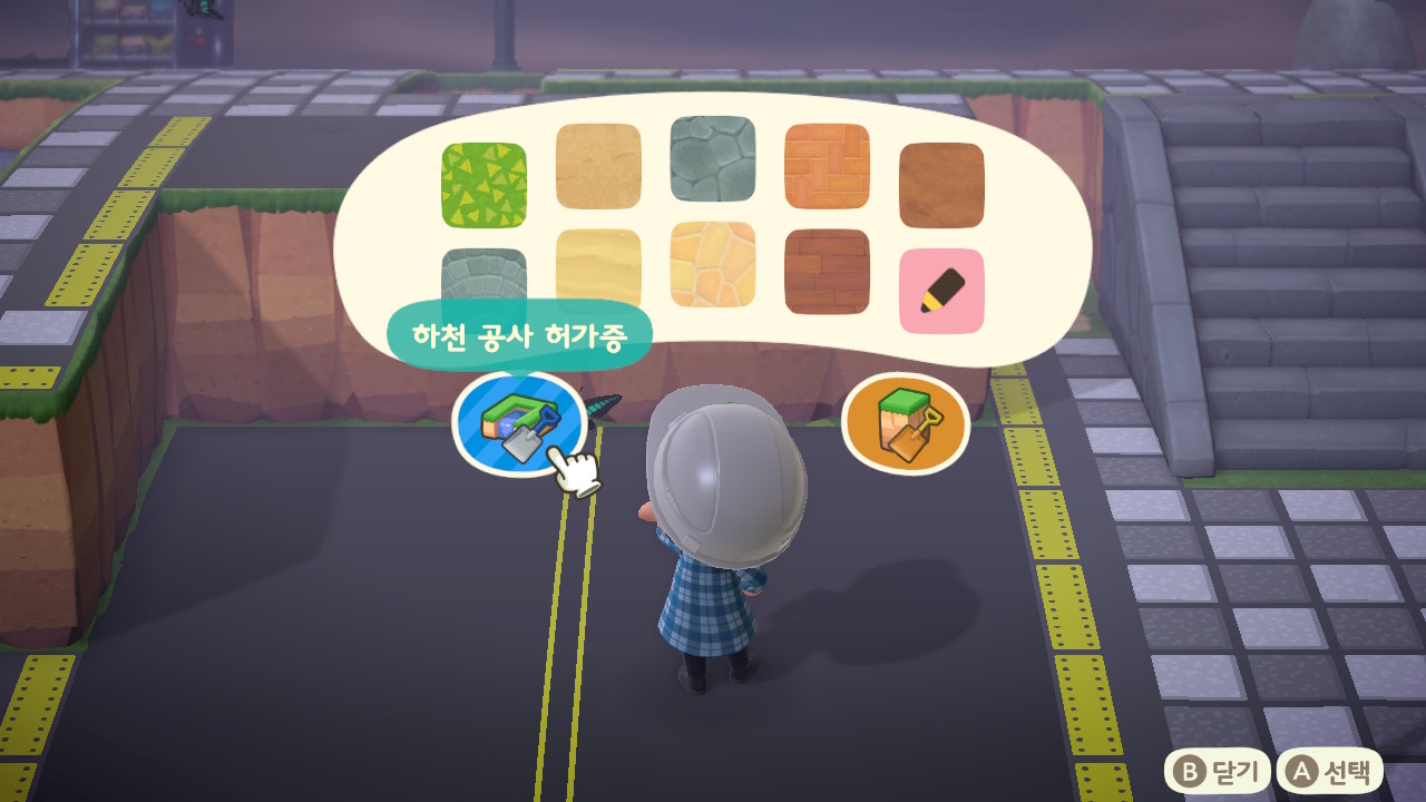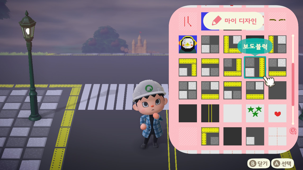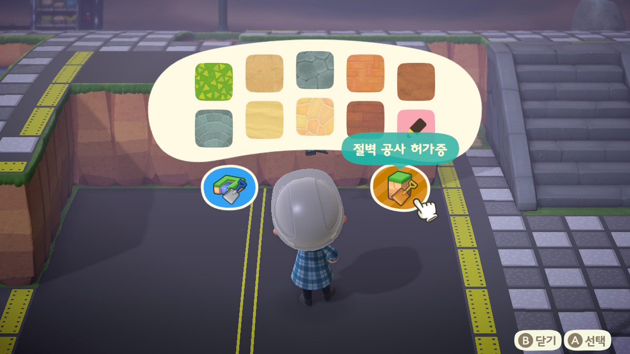 마이 디자인을 깔게 된 도로는 Y버튼을 누르면 지워지고 다시 잔디밭이 되더라고요