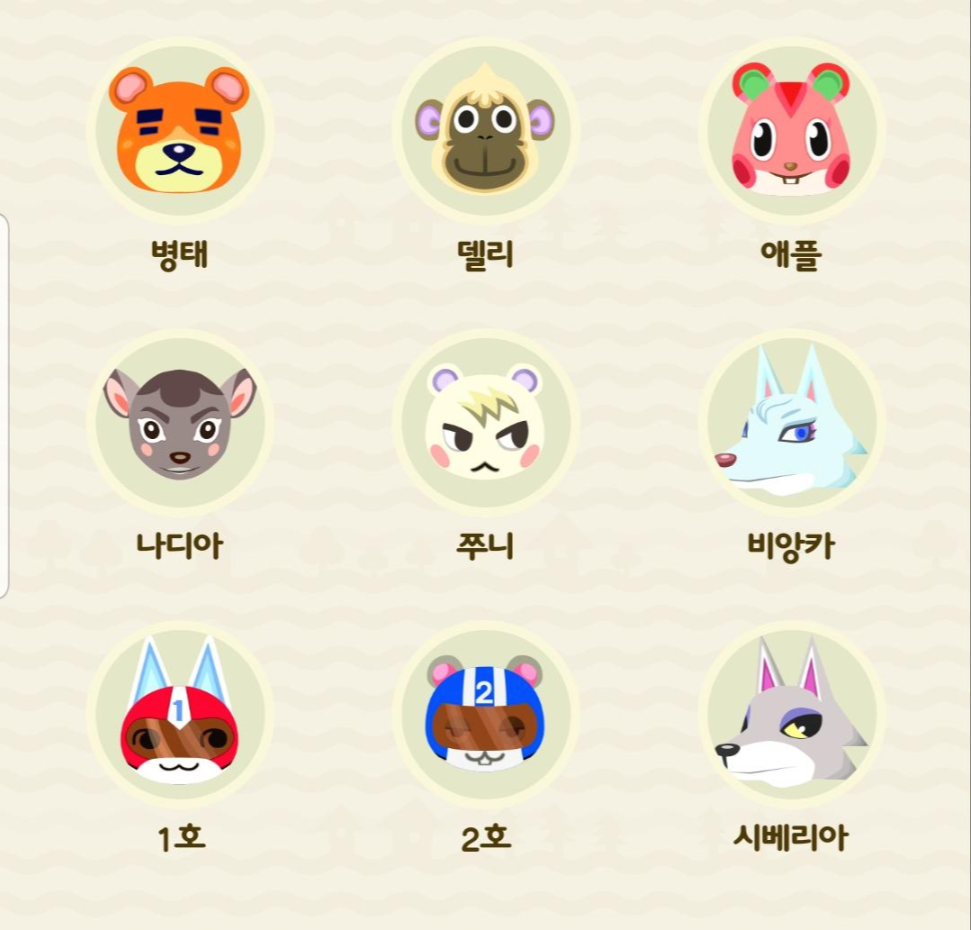 내 섬에 살고 있는 10명의 동물주민이 다 마음에 드시는 분들은 많이 없으실 거예요
